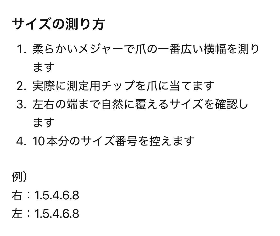 初めての方でも安心して、ぴったりサイズのネイルチップをお選びいただけます。