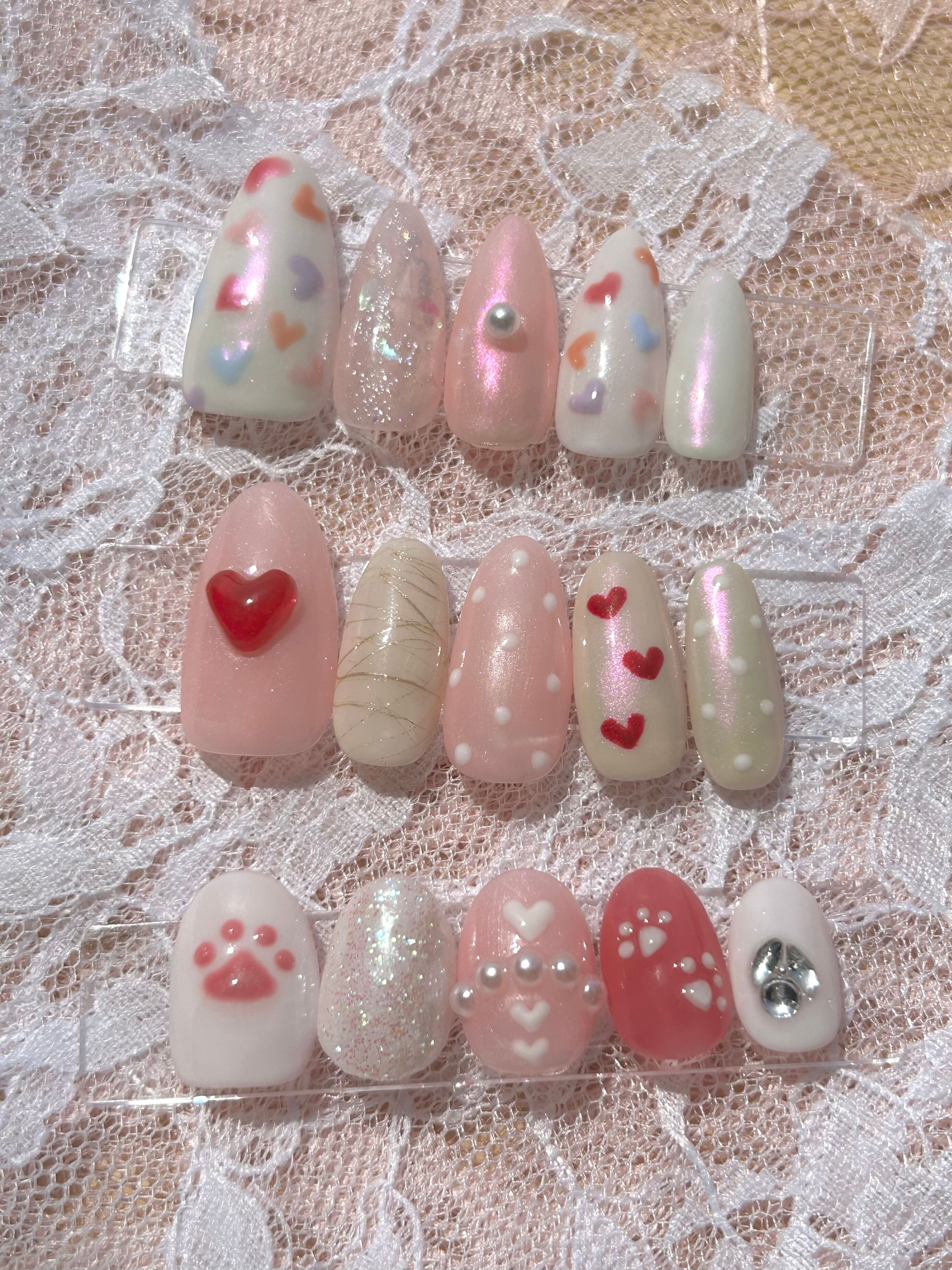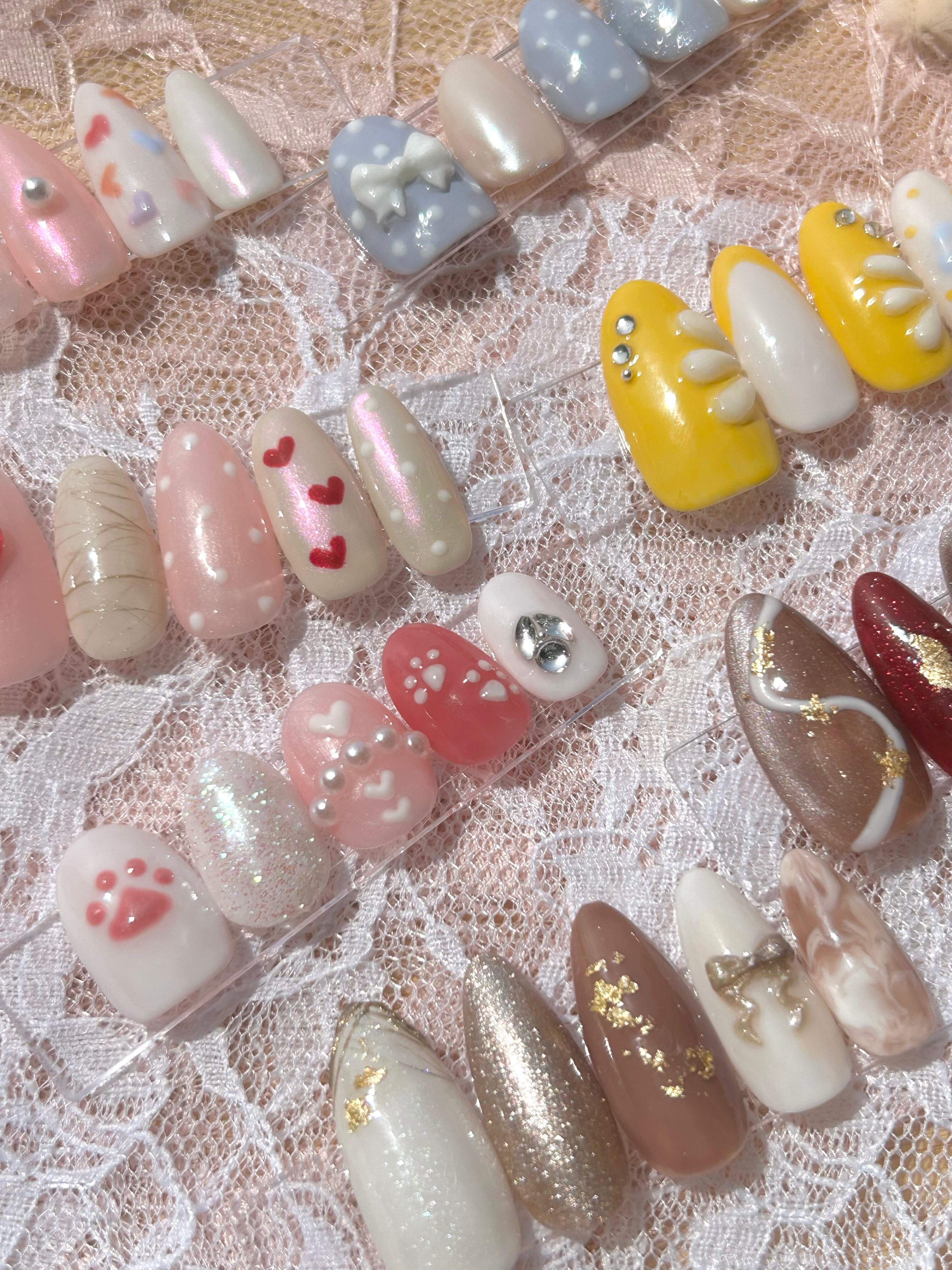 甘くて可愛い韓国風ネイルチップです。