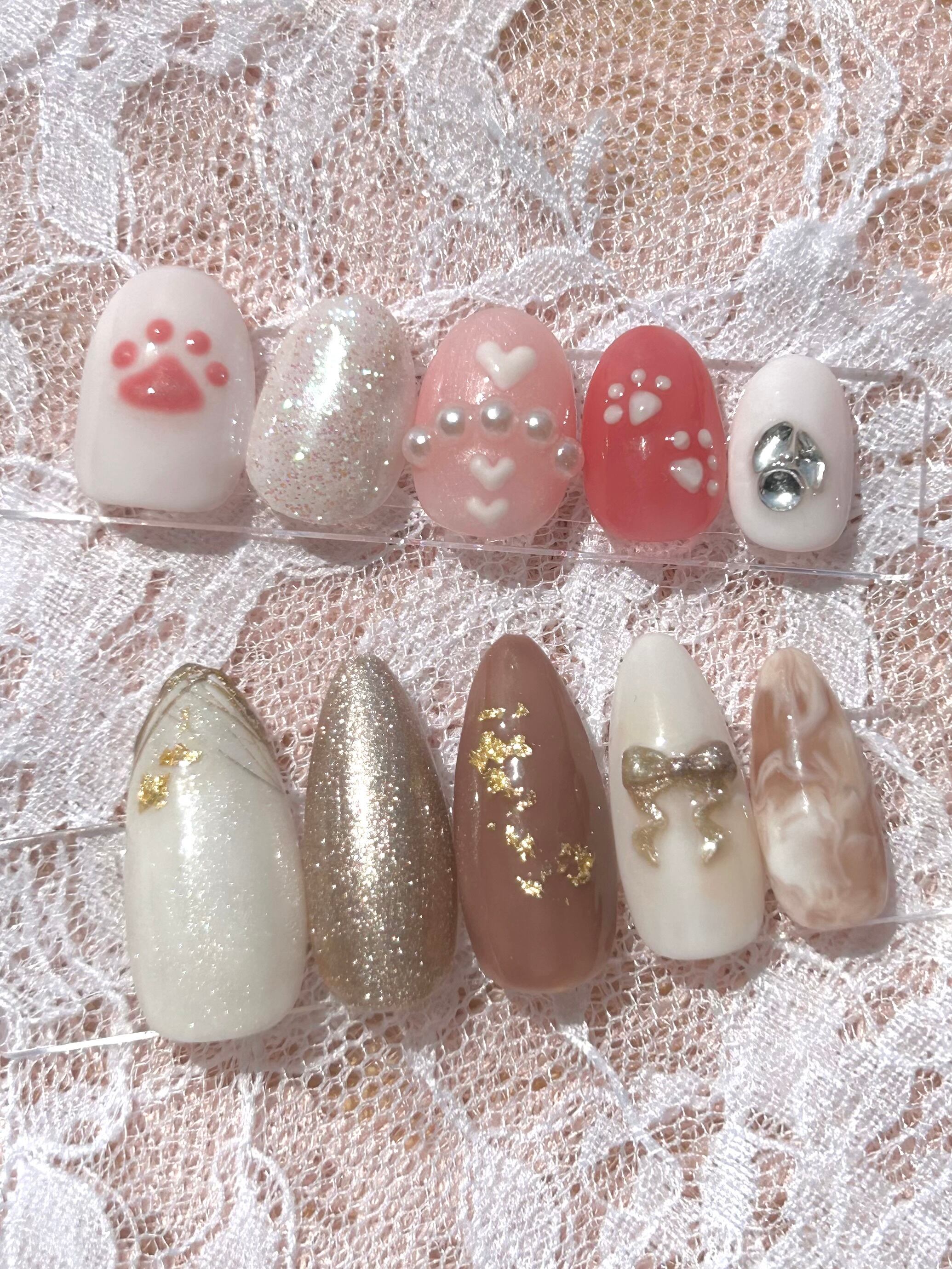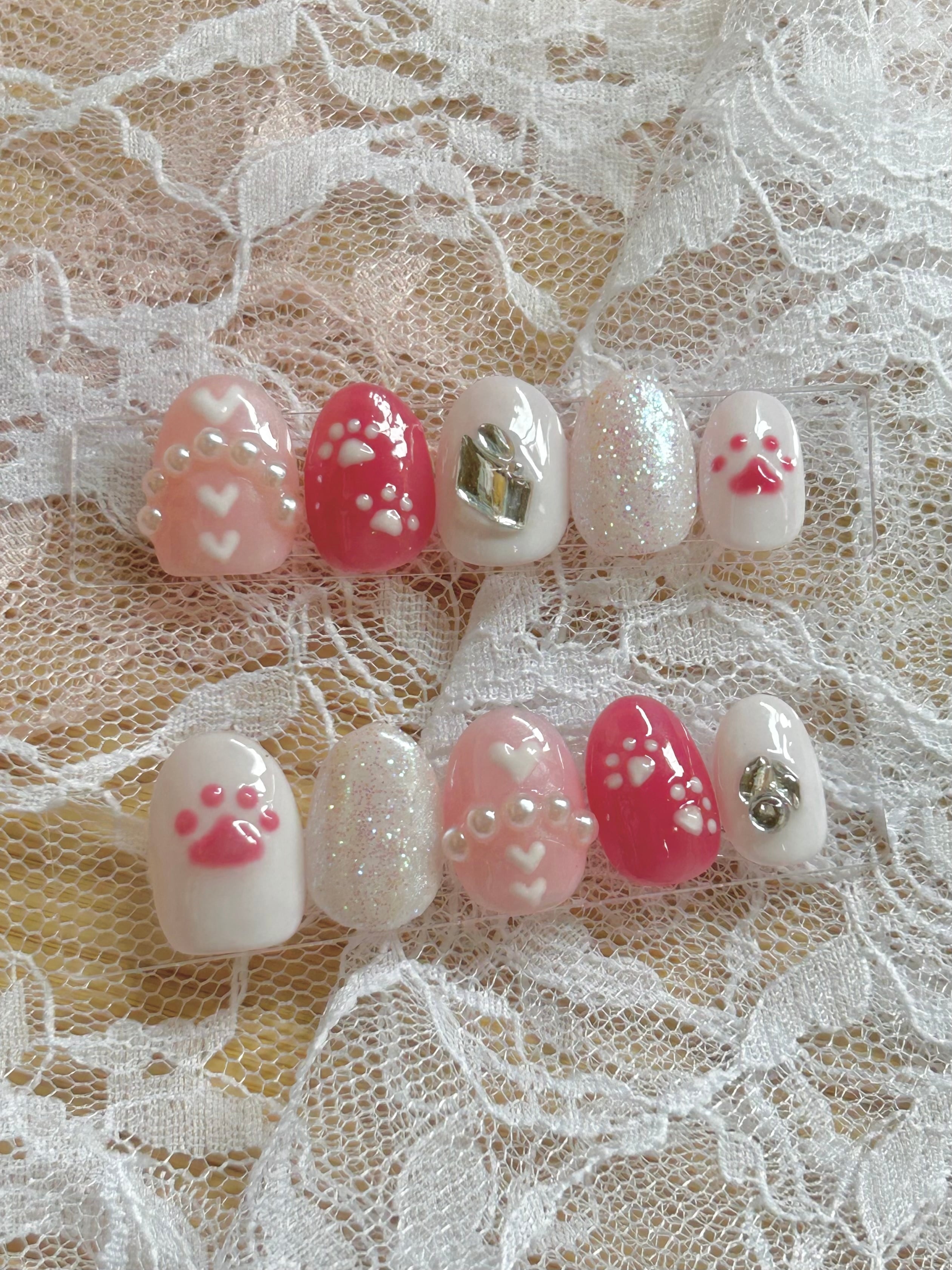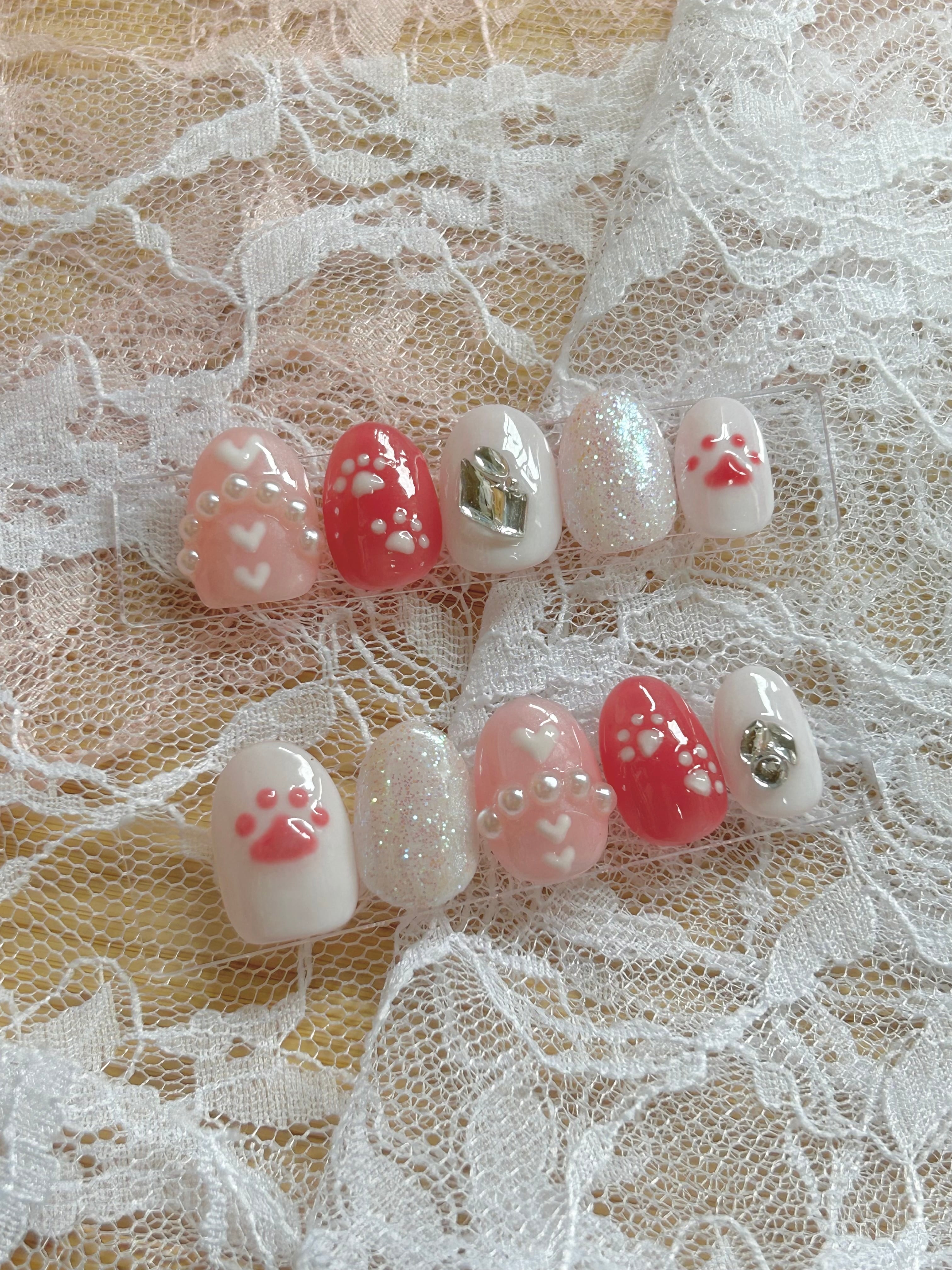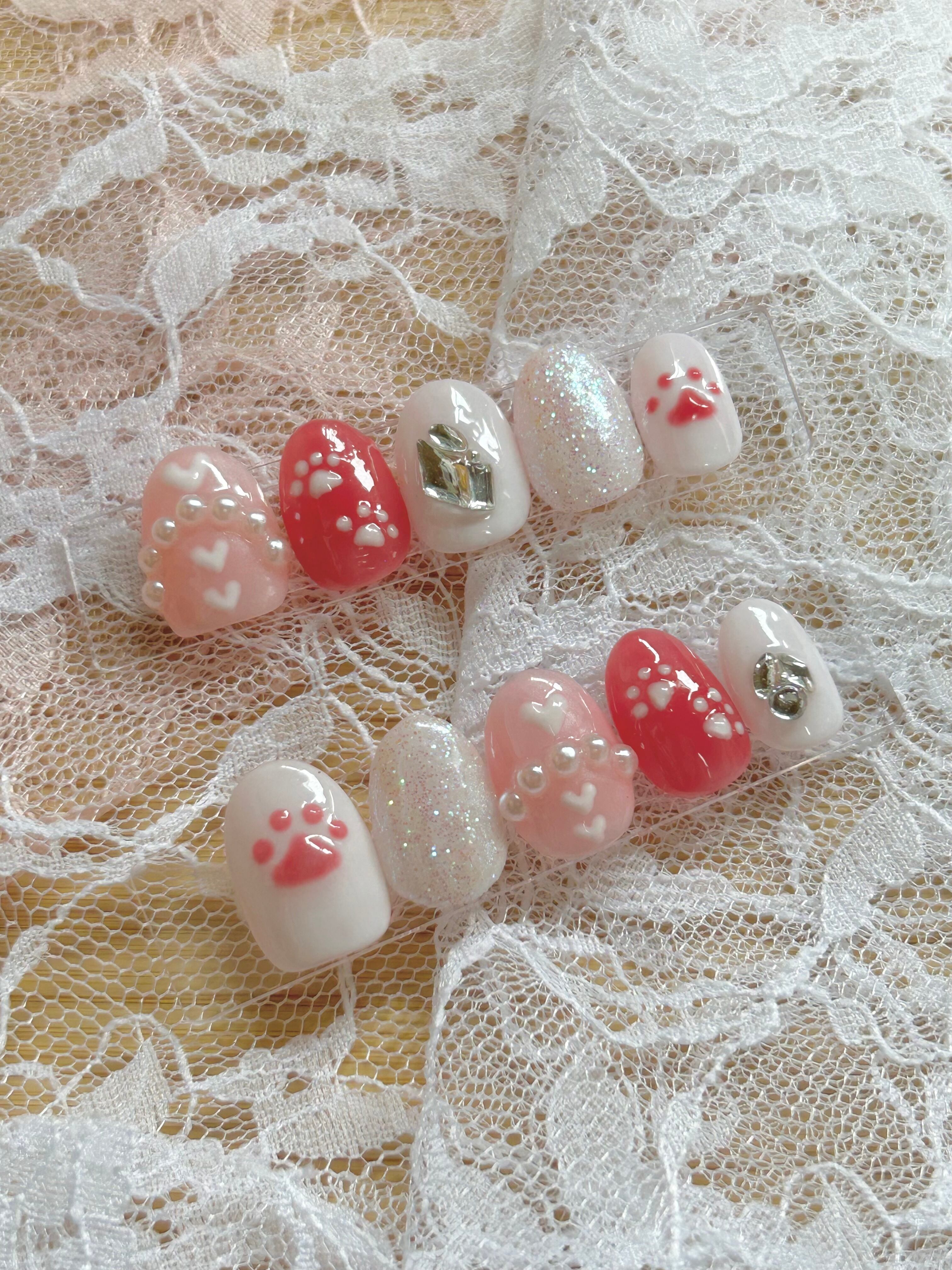 ぷっくり肉球・ハート・パールを組み合わせた